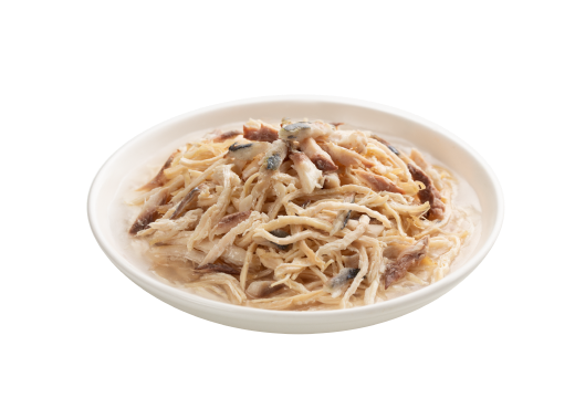 E1 เนื้อไก่ผสมปลาแมคเคอเรล ในน้ำเกรวี่สำหรับสุนัขสูงวัย