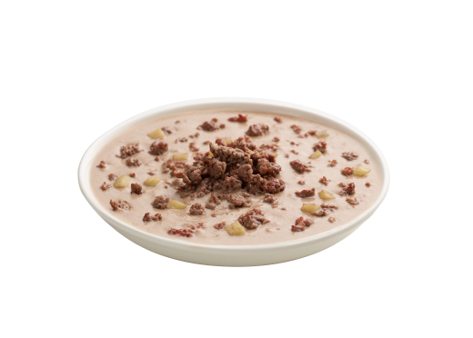 P1 เนื้อวัวสับผสมตับไก่มันฝรั่ง และนมแพะสำหรับลูกสุนัข